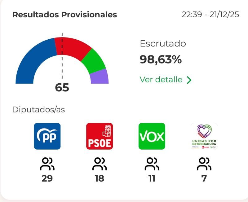 La paradoja de la jornada es evidente: el electorado penaliza con dureza al socialismo extremeño, pero no entrega un cheque en blanco a los populares. El resultado dibuja un Parlamento fragmentado en el que Vox y Podemos emergen como los “vencedores morales” de la noche, al consolidar o mejorar posiciones y ganar centralidad en el tablero político.